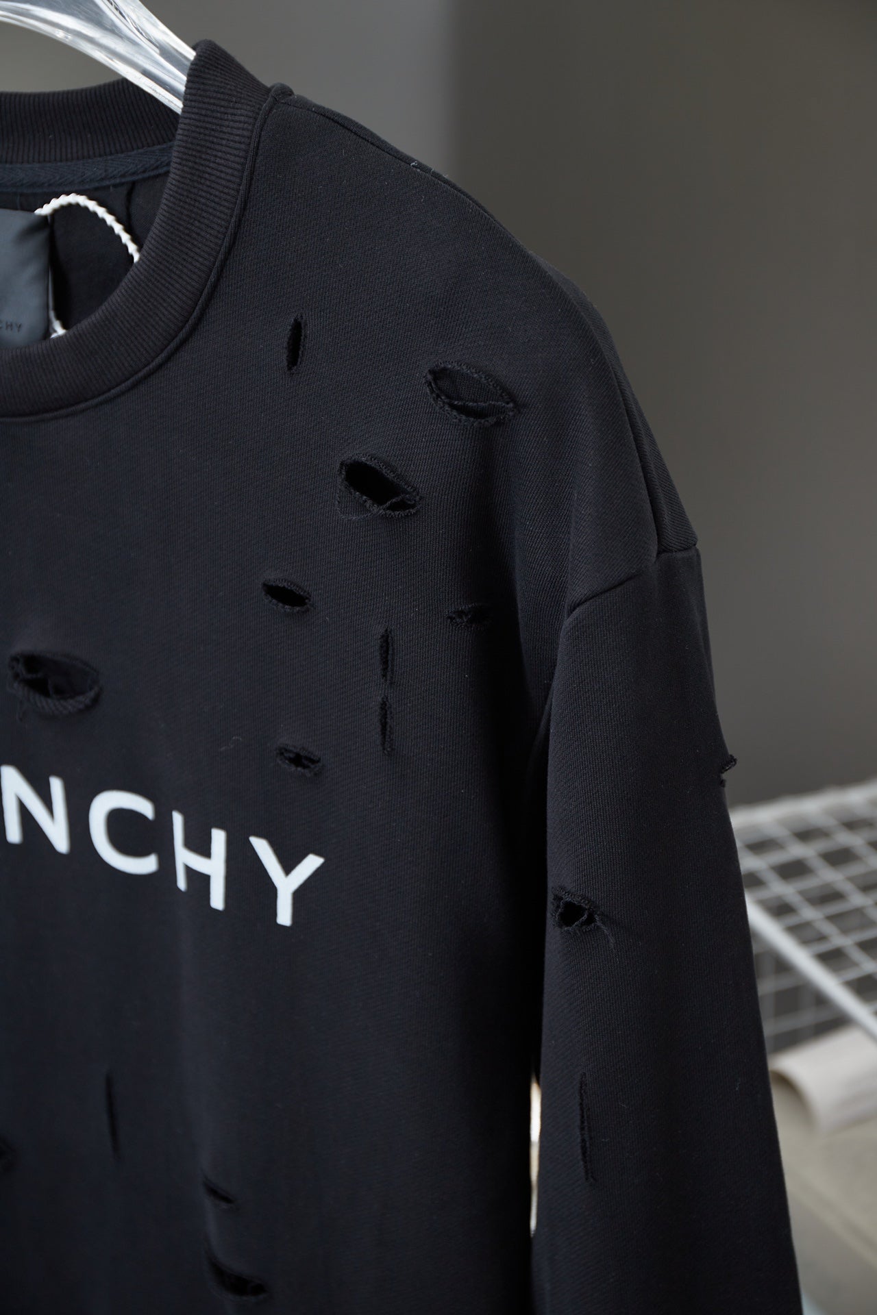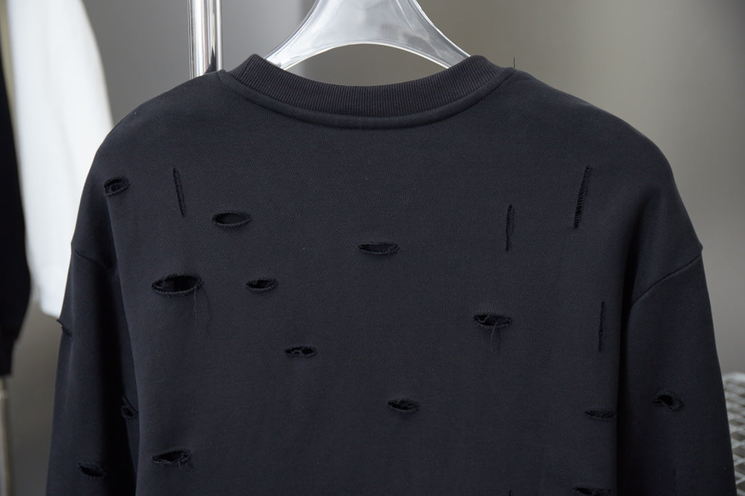 1021 New ripped style heavy crew neck hoodie