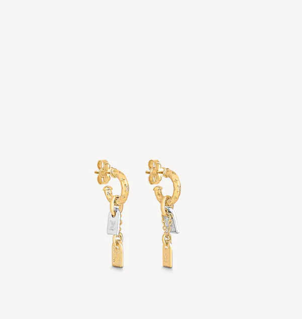Trunk and tag charms - The Precious Nanogram Tag earrings will bring signature flair to everyday ensembles. Suspended from these micro hoops are tiny locks and tags that allude to the House's iconic trunks. The chic bi-color design is echoed in the matching necklace and bracelet that can be paired with the earrings for maximum impact.